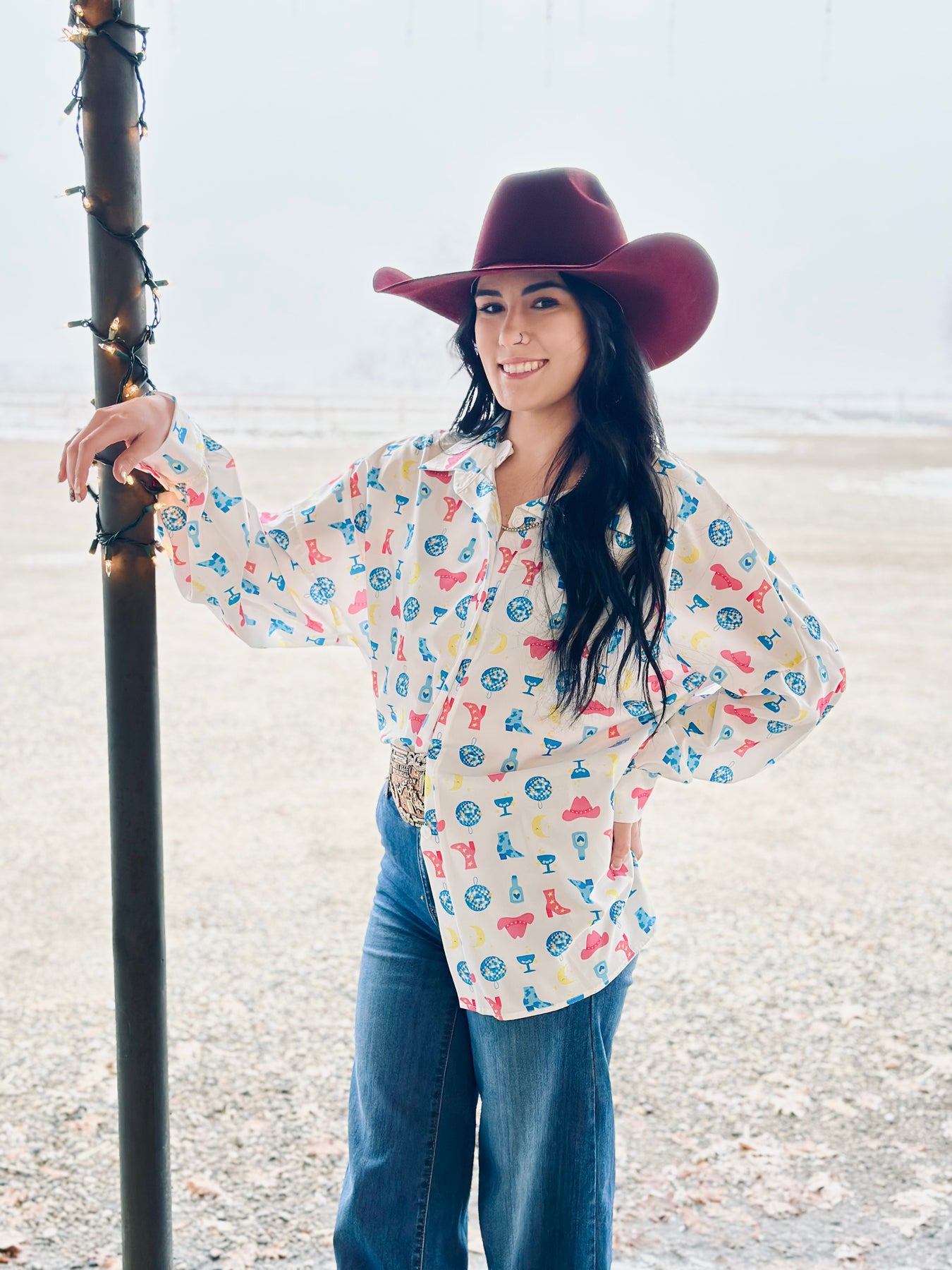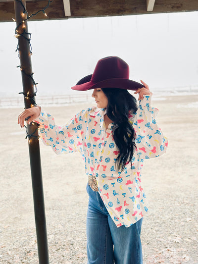 Make an eye-catching statement in the Neon Cowgirl Button-Down Top. Featuring a vibrant neon hue and classic cowgirl button-down details, this top is perfect for brightening up an outfit. Crafted with lightweight, durable fabric, this stylish top is sure to last.