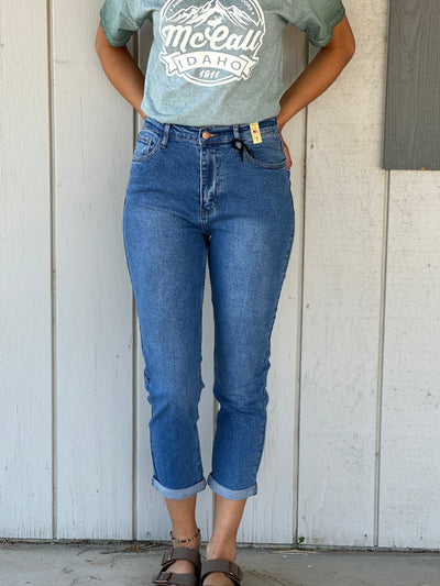 RISEN Full Size Mid Rise Fit Boyfriend Jeans with Cuff Plus Size