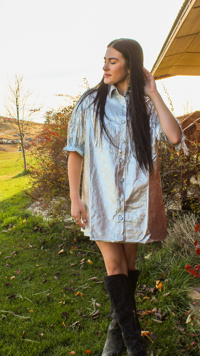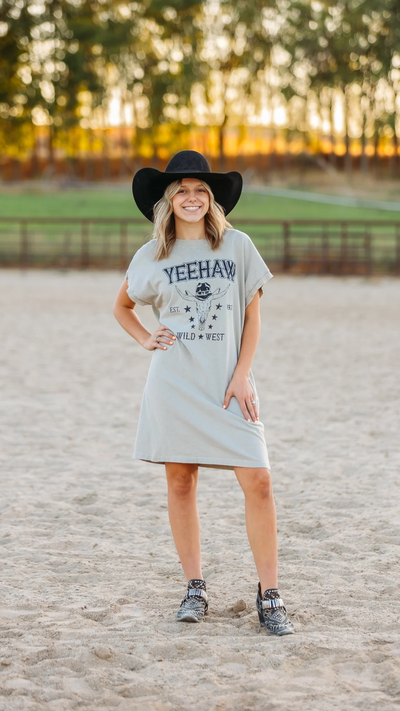 Umgee Full Size French Terry Short Sleeve Round Neck Dress Plus Size