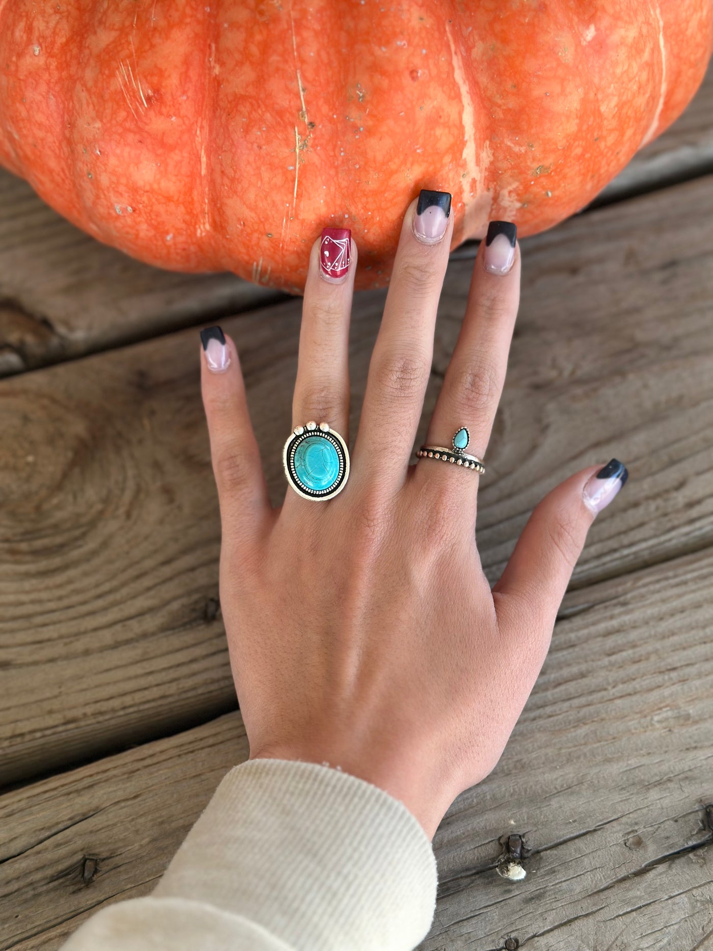 Embrace the stunning simplicity of our Circle Turquoise Adjustable Ring! Handcrafted with a delicate circle design and a striking turquoise stone set in silver, this ring adds a touch of elegance to any outfit. Elevate your style and indulge in its natural beauty. Feel bold and beautiful with every wear!