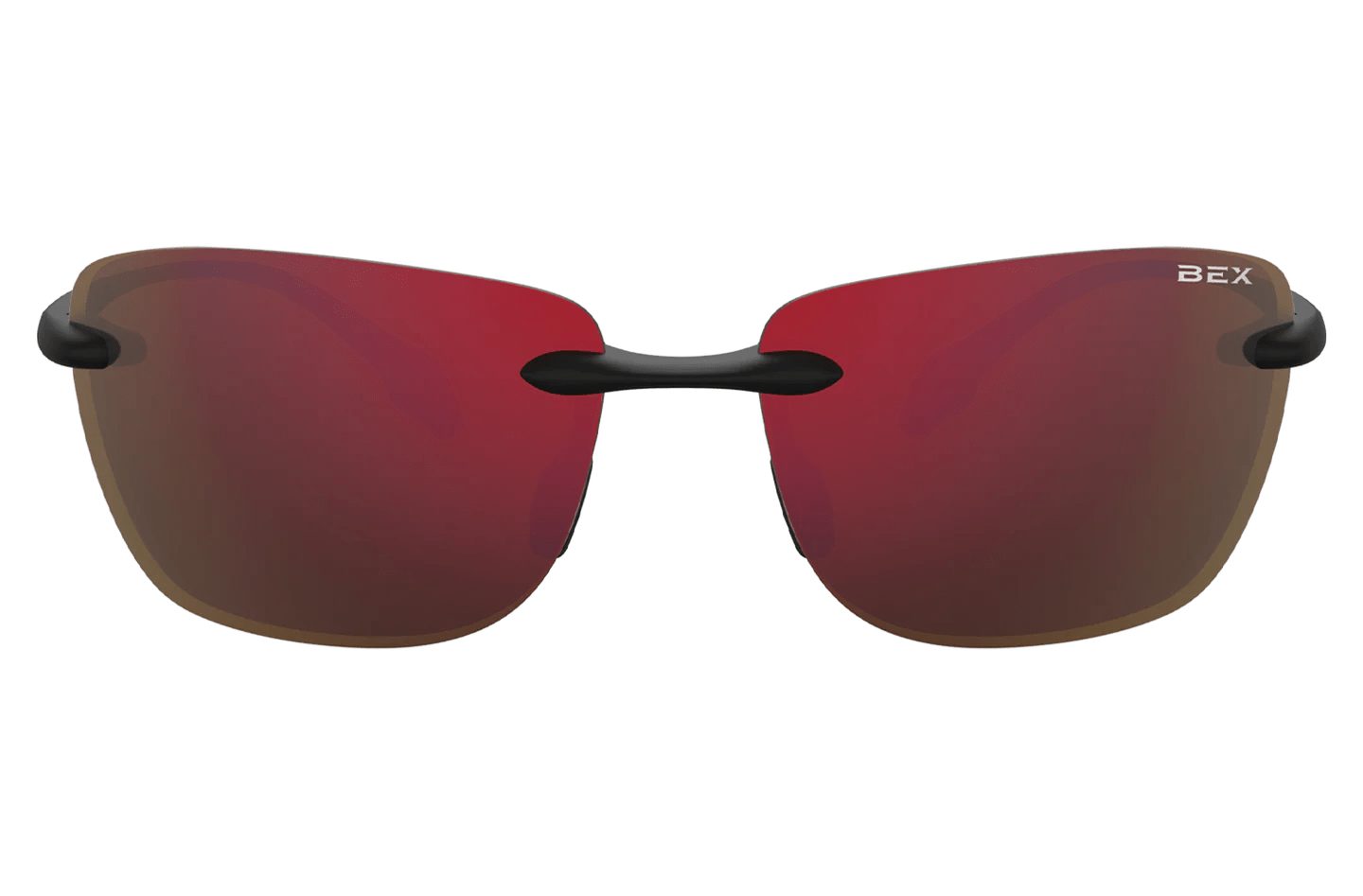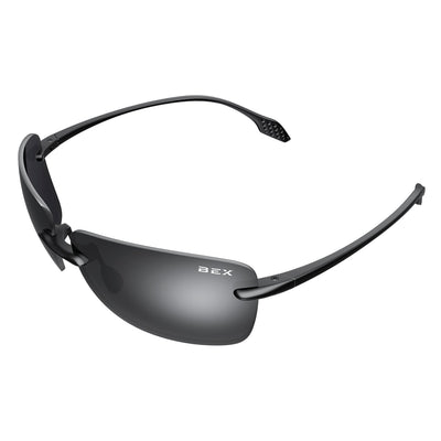 - Black/Gray (S39BGS) - Frameless sunglass with glossy black thermal plastic parts, and nose bridge with soft black nose pads.