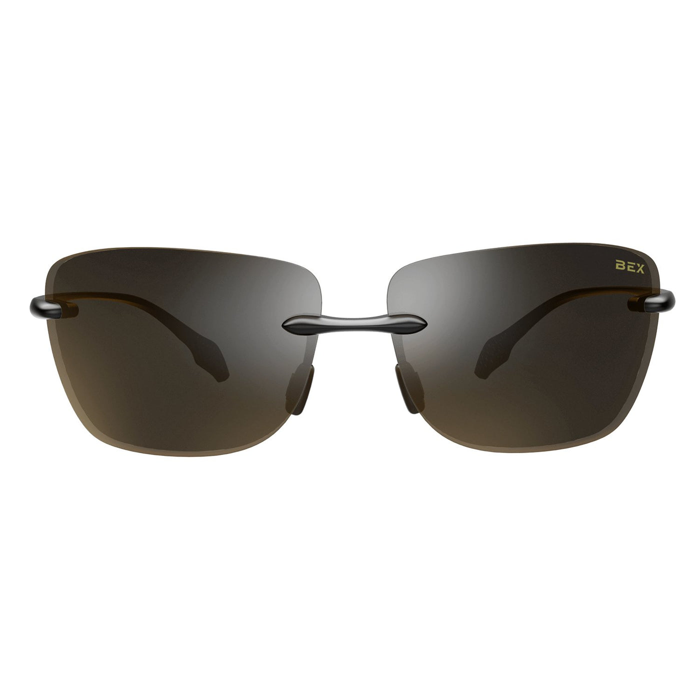 - Black/Brown (S39BBS) - Frameless sunglass with glossy black thermal plastic parts, and nose bridge with soft brown nose pads.